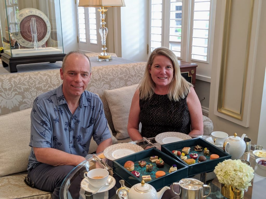 It was a lovely sunny afternoon, my partner and I got dressed up to savor a high tea in Vietnam. When we arrived, we were happy with our choice. The setting was fine-looking and stunning all around us. They sat us in a corner on a comfortable couch where we enjoyed the high tea with lovely jazz music playing softly in the background. The area is not dedicated to only high tea as other teas we have done, but that did not seem to make a change in the lovely experience we had. When we got seated, we made our selection of tea I selected the ginger and honey and Philipp chose English breakfast.