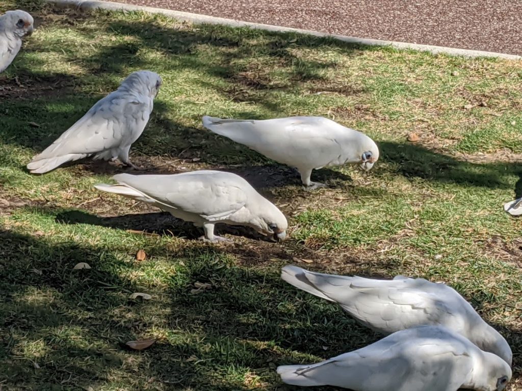 They are asking tourists and parkgoers to stop feeding them. Many believe it will be the most effective way of reducing the numbers of Corella parrots. I am not sure about that, when we were sitting along the river the birds were eating nuts from a local tree.