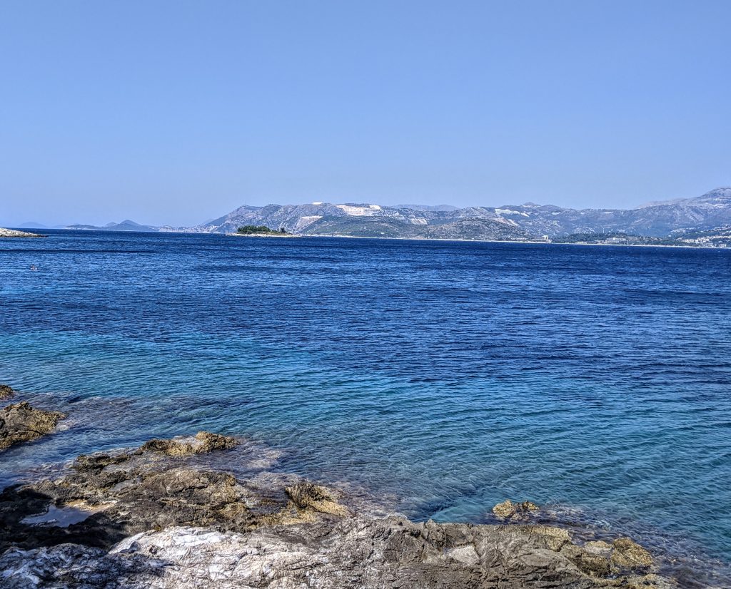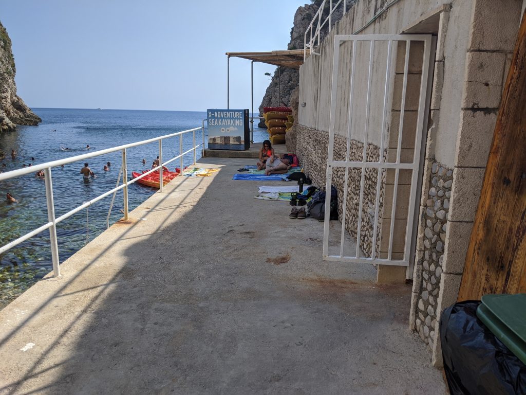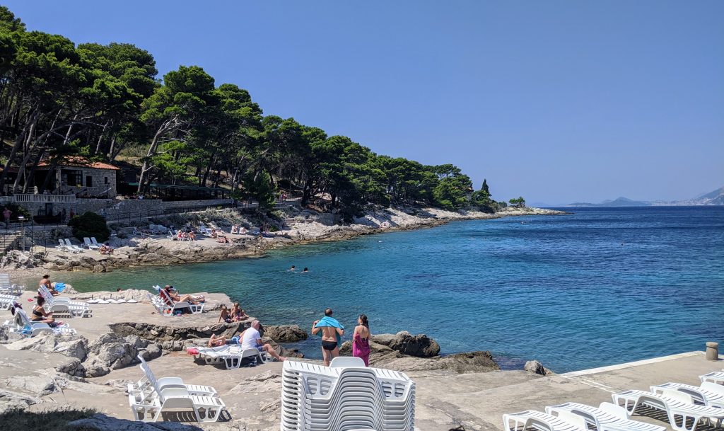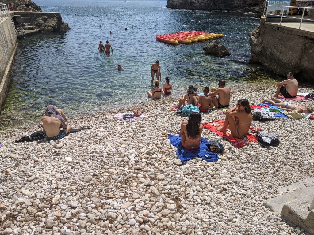 The beaches here in Croatia are not the typical sandy, tropical island type. But instead, the locals lay down towels along with the smooth pebbles, paved stone areas, and rocks that access the sea; this is their beach.