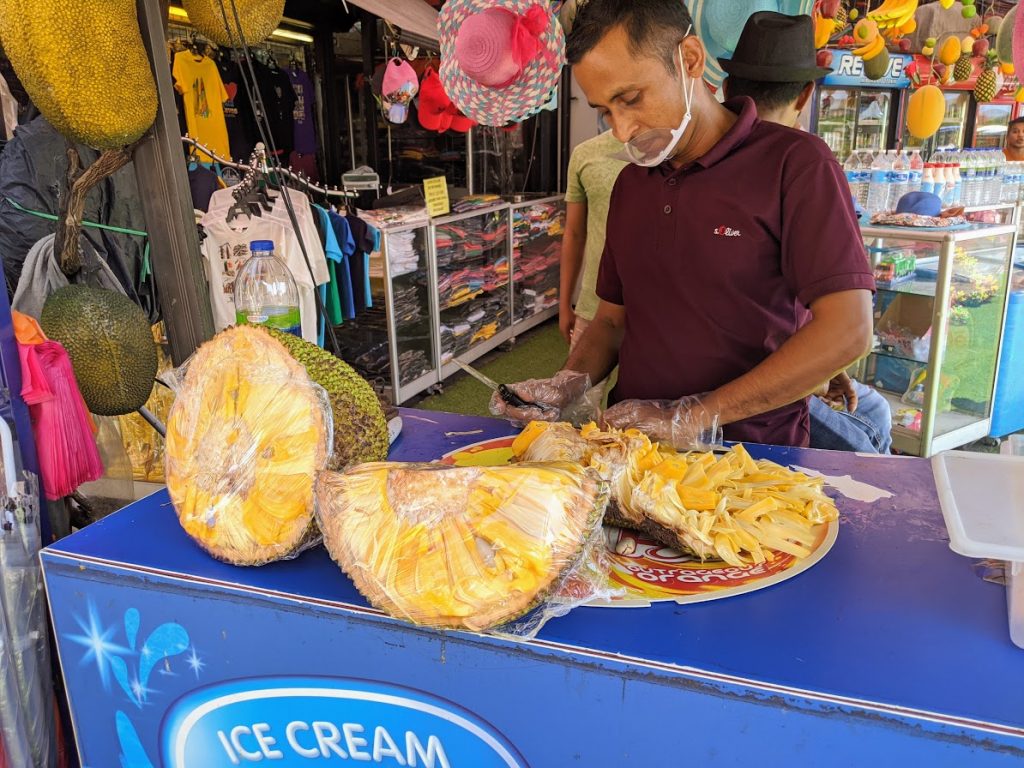 Some people confuse jackfruit with durian, which looks similar. But there is a big difference – the smell. Durian has a strong odor that may not be pleasant to everyone; jackfruit smells sweet, like fruit. Durian is much smaller than jackfruit and the outside may have spiky thorns while a jackfruit has smooth bumps on its surface.