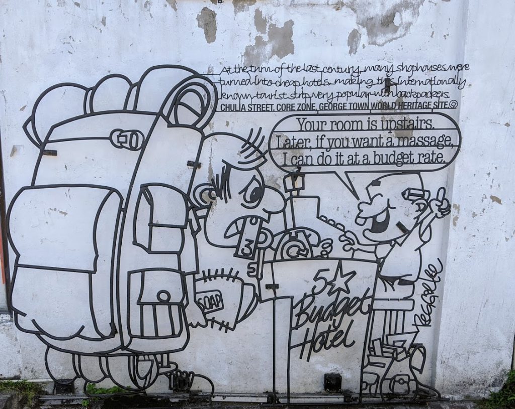 Many restaurants, hotels, and other places take part in this art model and have designed art murals both inside and outside their establishments. It is a clever way to create an interesting atmosphere on the island. We went around town taking pictures, to get you excited to visit this lovely city. Put Penang Malaysia on your itinerary and book a room in George Town.